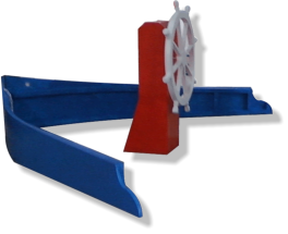 utility trailer. The ships wheel turns, smoke comes out of